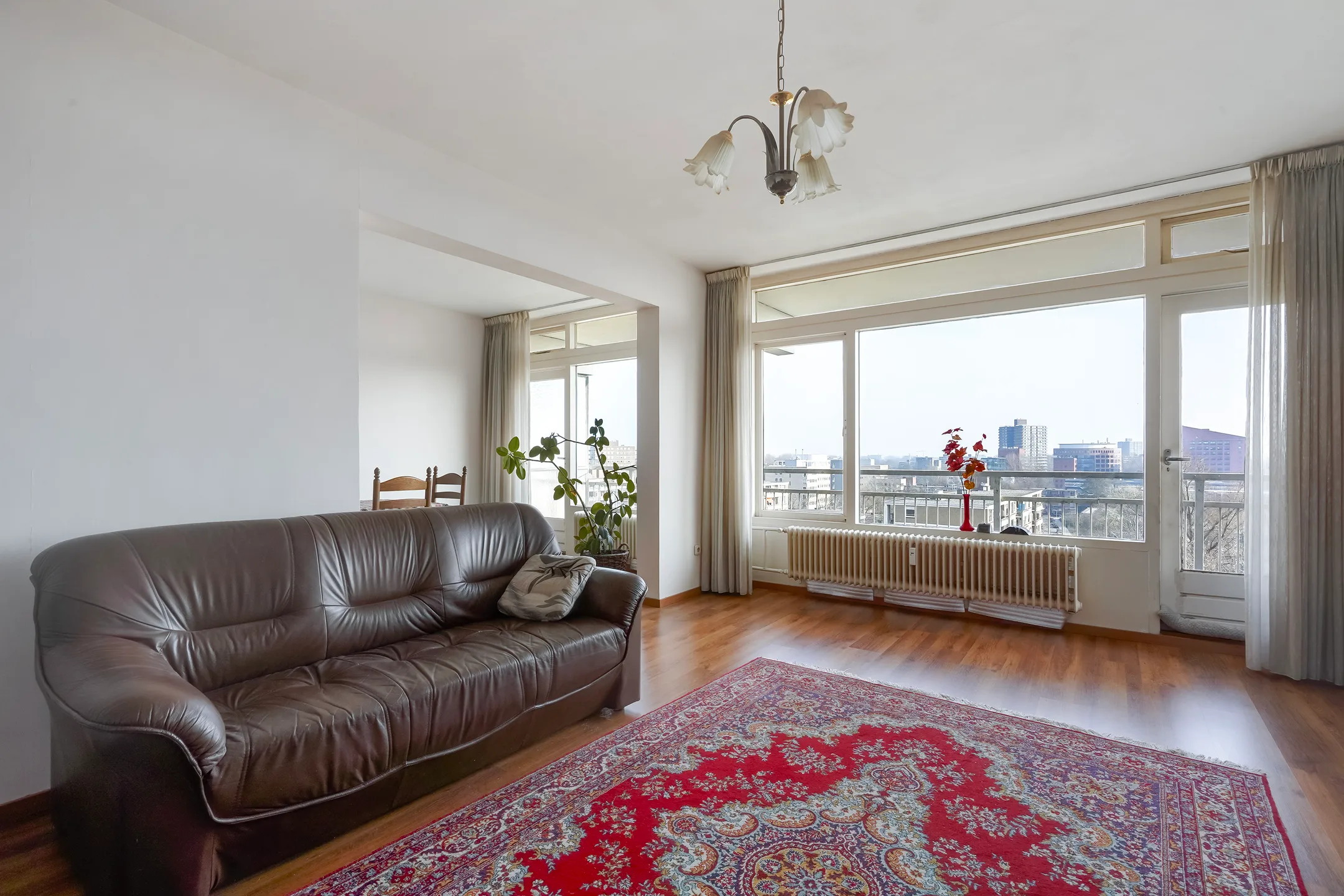 Via de afgesloten entree met videofoon en brievenbussen bereik je per lift of trap de zesde verdieping. Binnenkomst in de woning via een entreehal met meterkast, gevolgd door een ruime hal met praktische bergkast en toegang tot alle ruimtes. De woonkamer is opvallend licht en ruim opgezet, met directe toegang tot het balkon dat zich over de volledige breedte van de woning uitstrekt. Hier geniet je van zon en een weids uitzicht. De keuken bevindt zich aan de galerijzijde. De badkamer ligt centraal in de woning en is ingericht met een inloopdouche, wastafelmeubel en aansluitingen voor wasmachine en boiler. Het toilet is separaat. De woning beschikt over twee slaapkamers, praktisch gesitueerd aan zowel de galerij- als balkonzijde. Aanvullend De bijbehorende berging is gelegen op de tweede verdieping. In de onderbouw bevinden zich een gezamenlijke fietsenruimte en afvalvoorzieningen, bereikbaar via zowel de centrale entree als een aparte ingang. Bewoners kunnen gebruikmaken van het afgesloten parkeerterrein naast het gebouw.